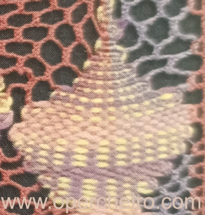 Una vez más la diferencia principal es el color. La otra diferencia importante en el patrón es la dirección de las hojas. En el chaleco van siempre en la misma dirección y en el fular van enfrentadas unas a otras. Fijaos en el detalle.