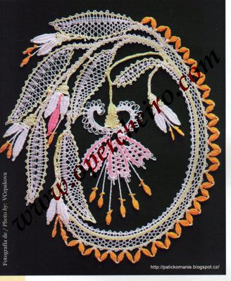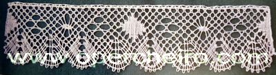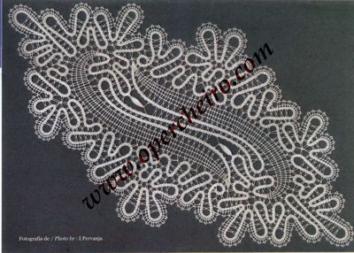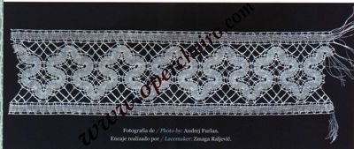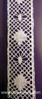Este entredós está realizado con la técnica de cinta ancha de Idrija. Como sucede con la mayoría de los trabajos publicados en Vuelta y Cruz además del patrón encontraréis un esquema que facilita muchísimo el trabajo. Diseño de la Colección de Encajes del Museo Municipal de Idrija.