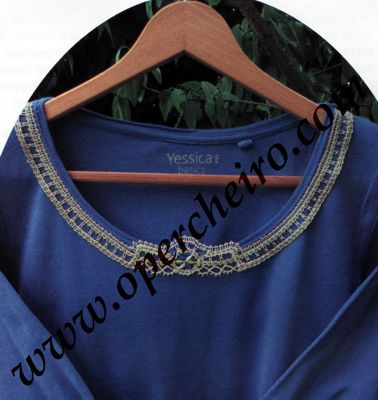 Muchas veces un pequeño trabajo puede cambiar totalmente el aspecto de una prenda básica. Con esta labor, que necesita pocas horas, podréis convertir una camiseta normal en una prenda con mucho estilo. El patrón está extraído de una revista antigua y reconstruído por Antje González.