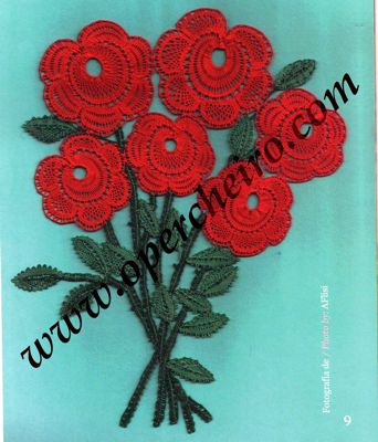 Seguimos con un precioso ramo de rosas realizado en encaje Duquesa. Además también encontraréis datos interesantes sobre esta técnica. Diseño de Anna Flisi.