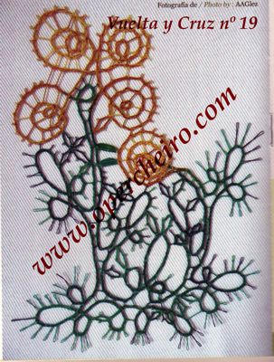 En el número 13 de esta publicación ya aparecía un trabajo realizado a fiandra de tres pares. Aquí tenéis estas flores para seguir practicando esta interesante técnica. Diseño de Gianfranca Tolloi.