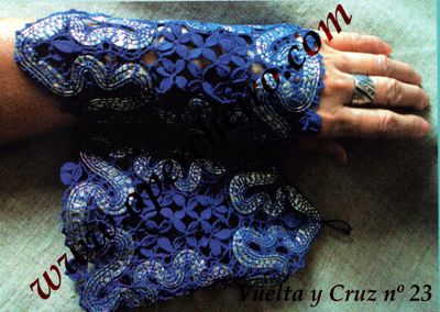 Estos bonitos mitones los podéis lucir en cualquier encuentro de encajeras. Con otros colores podrían quedar perfectos como complemento nupcial, por ejemplo. Diseño de Larisa Ten.