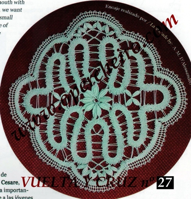La siguiente pieza es ideal para practicar el encaje de Schneeberg, que fue el curso paso a paso de las revistas Vuelta y Cruz número 4, 5 y 6. El diseño es de Ingrid Martin.