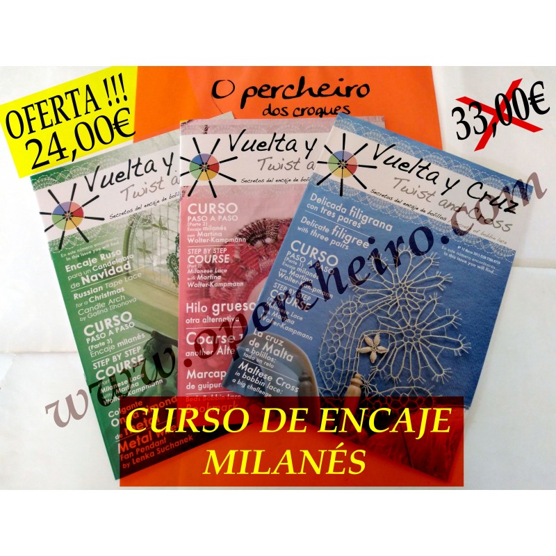 Curso de ENCAJE MILANÉS, desarrollado en tres partes, una en cada ejemplar.