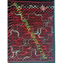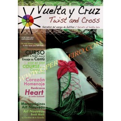Kit con todos los hilos necesarios y nº 20 de la revista "Vuelta y Cruz" (patrón en la revista, junto con explicaciones) para la confección a bolillos en punto "caos" del chal diseñado por Marcela Susana Toledo.
